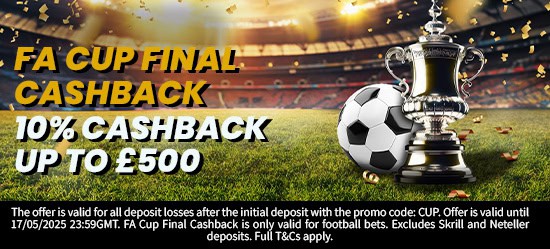 New Players Only. Free bet - one-time stake of £10, min odds 1.5, stake not returned. 1X wager the winnings. Wager from real balance first. Wager calculated on bonus bets only. Max conversion: £200. Free bets and bonuses are valid for 7 days. Limited to 1 sport & 5 casino brand/s within the network. Withdrawal requests void all active/pending bonuses. Excluded Skrill and Neteller deposits. Full Terms Apply